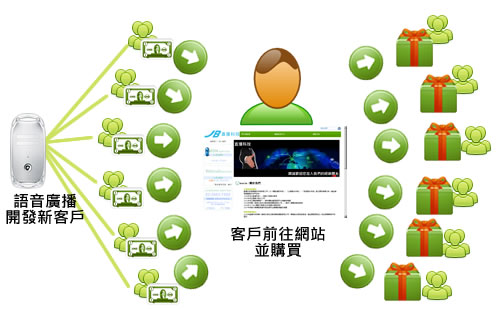 利用語音廣播做為永不倦勤的業務團隊,不斷的開發陌生顧客。